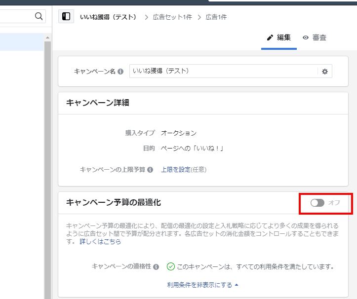 1つ1つの広告セットの予算をいじらず、キャンペーン予算変更の1箇所のみで済むので非常に楽です。