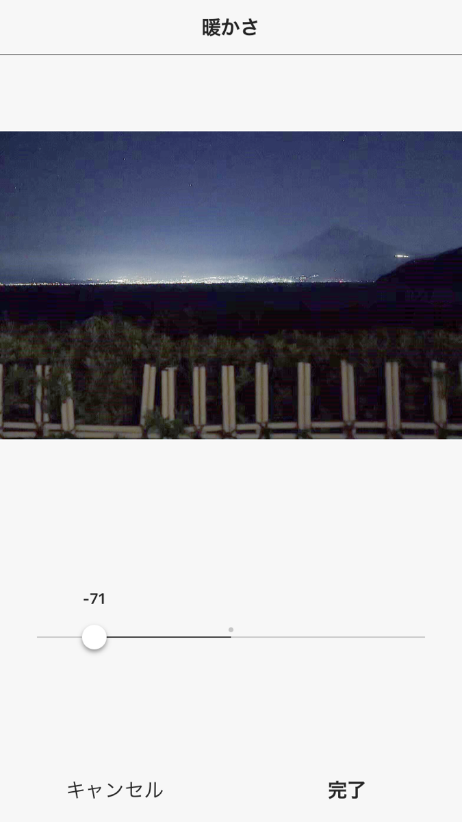 今回はシャドウ・明るさ・暖かさを調整します。