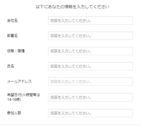 基本的には『会社名』『担当者名』『電話番号』『メールアドレス』での設定が多いです。