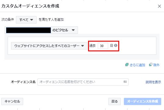 ③下記の画面になりましたら、赤枠のところに数字(リマケの追跡期間)を入力します。